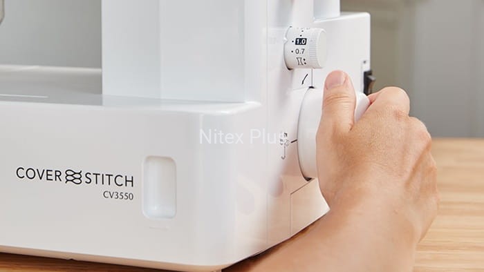 W coverze CV3550 możliwe jest włączenie górnego przeplotu, co pozwala na szycie zarówno ściegami jednostronnie drabinkowymi jak i dwustronnie drabinkowymi. Żaden bezpośredni konkurent rynkowy nie jest w stanie zaoferować tak wiele. Duży komfort pracy na coverlocku został osiągnięty poprzez powiększone pole robocze do wielkości 155 mm x 100 mm. Dla zwiększenia wygody wszystkie dźwignie i pokrętła zostały przeniesione na prawą stronę maszyny tak, by nie były one przesłonięte materiałem w czasie pracy.