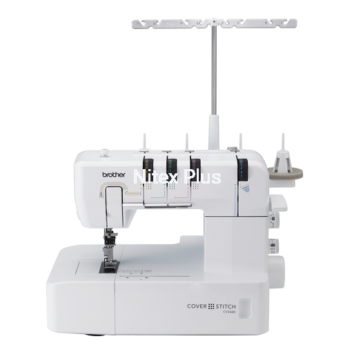 Na lewo od igieł, na obudowie umieszczono przydatny, przyśpieszający pracę obcinacz nitek. W górnej części obudowy znajduje się zaś wygodny uchwyt do przenoszenia maszyny oraz pokrętło do regulacji docisku stopki. Przedni plastik obudowy został zaś ozdobiony przejrzystą, różnokolorową instrukcją drogi każdej z nici. Rozwiązanie to jest doskonale znane wszystkim użytkownikom overlocków Brother. Nawlekanie nici jest poprowadzone przez metalową antenę, trwałe rozwiązanie niespotykane w innych coverlockach domowych. Poprzez system chwytaczy i przelotek igła finalnie trafia do igły, która w odróżnieniu od poprzedniej generacji coverlocków Brother opuszcza się w kierunku płytki ściegowej pod kątem prostym. Zwiększa to siłę przebicia igły i zmniejsza uszkodzenia materiału spowodowane pracą igły. Dzięki zastosowanym mechanizmom nawlekanie covera CV3440 jest intuicyjne, co nie jest wcale takie oczywiste przy tak znacznym zaawansowaniu technicznym maszyny.