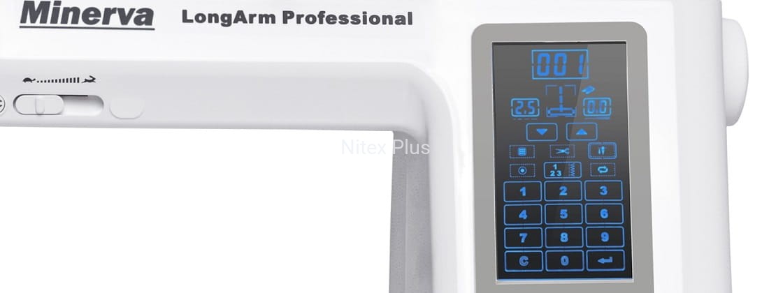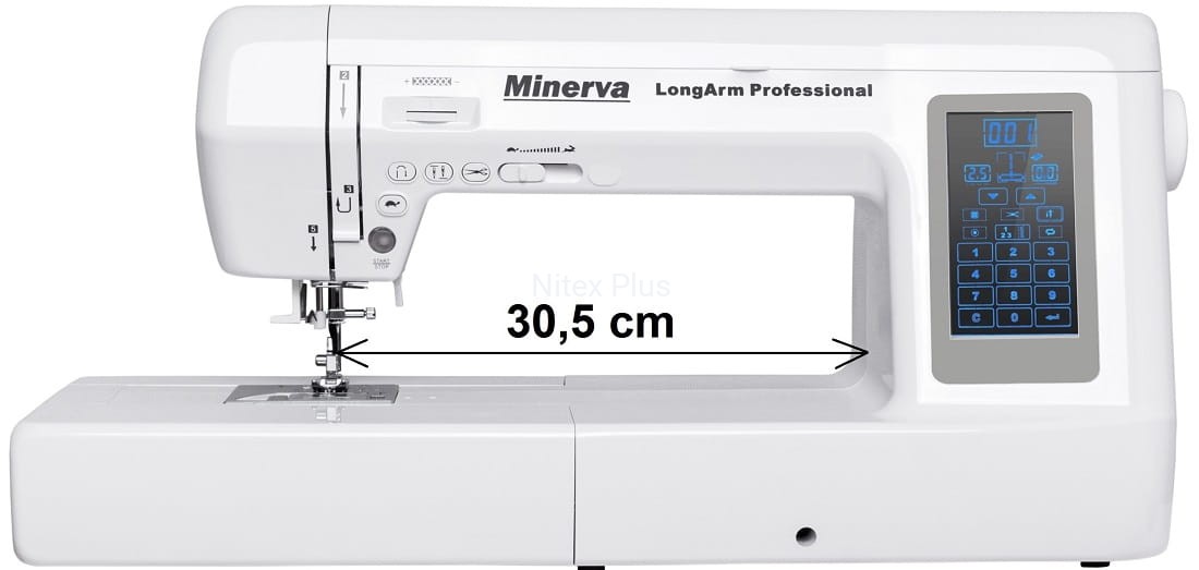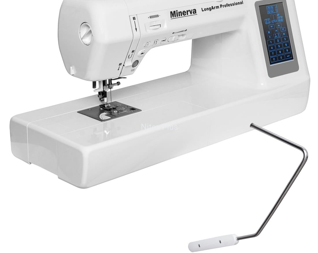 Minerva LongArm Professional jest najwyższej klasy maszyną komputerową oferującą ogrom możliwości oraz wysoki komfort szycia. Dzięki zastosowaniu wydłużonego ramienia uzyskano aż 30,5cm przestrzeni pomiędzy igłą a ramieniem dzięki czemu szycie większych wyrobów jest niesamowicie wygodne a przy patchworku oraz quiltingu wręcz niezbędne.
