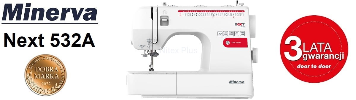 Minerva Next 532A - wyjątkowo funkcjonalna i trwała maszyna do szycia, z którą możesz podjąć się wszelkich wyzwań szyciowych, wzbogacona wersja znanej i cenionej Minerva Next 363d