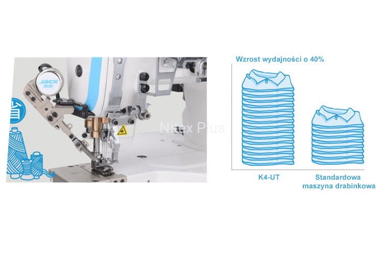 Maszyna drabinkowa JACK K5-UT dostępna również w wersji z funkcjami automatycznymi: elektromagnetycznym podnoszeniem stopki i obcinaniem nici.
