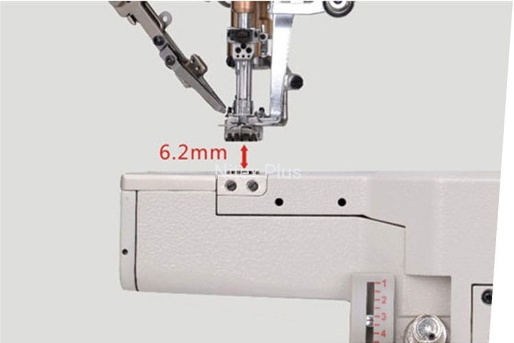 Nowoczesna 3-igłowa maszyna drabinkowa z łożem cylindrycznym i funkcjami automatycznymi wyposażonych w energooszczędny silnik zamontowany w głowicy (system Direct Drive), który gwarantuje cichą i niezawodną pracę oraz mniejsze zużycie energii elektrycznej. Maszyny te przeznaczone są do przeszywania zamkniętych obwodów w bluzkach, T-shirtach i innych wyrobach z dzianin, rozszywania szwów owerlokowych, ozdobnego przeszywania i wielu innych operacji. Dolny transport różnicowy zapewnia ścieg wysokiej jakości, nawet przy bardzo niestabilnych materiałach typu lycra. Maszyna posiada oświetlenie LED (z możliwością 3-stopniowej regulacji natężenia światła).