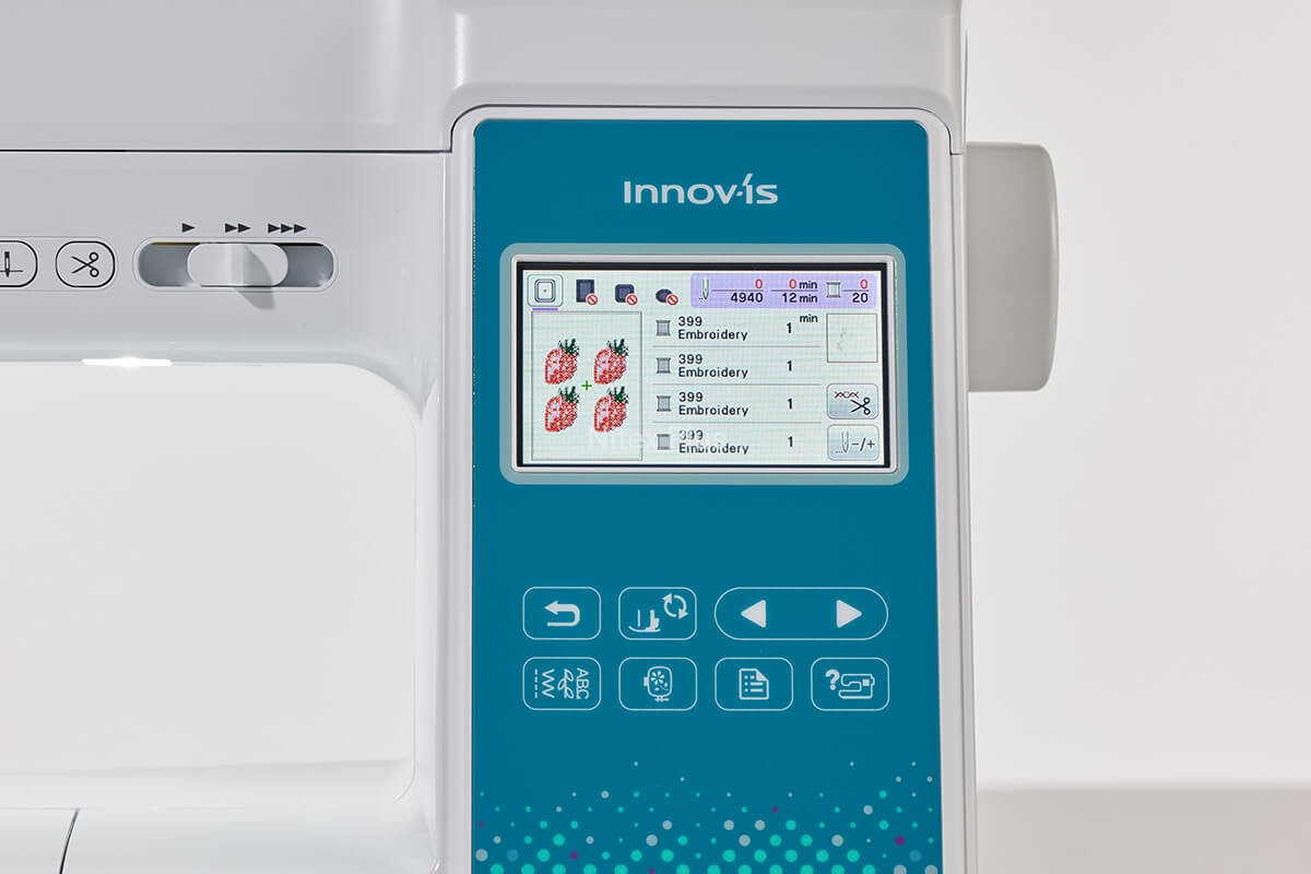 Wszystkie informacje o szyciu wyświetlane na czytelnym, podświetlanym ekranie dotykowym.