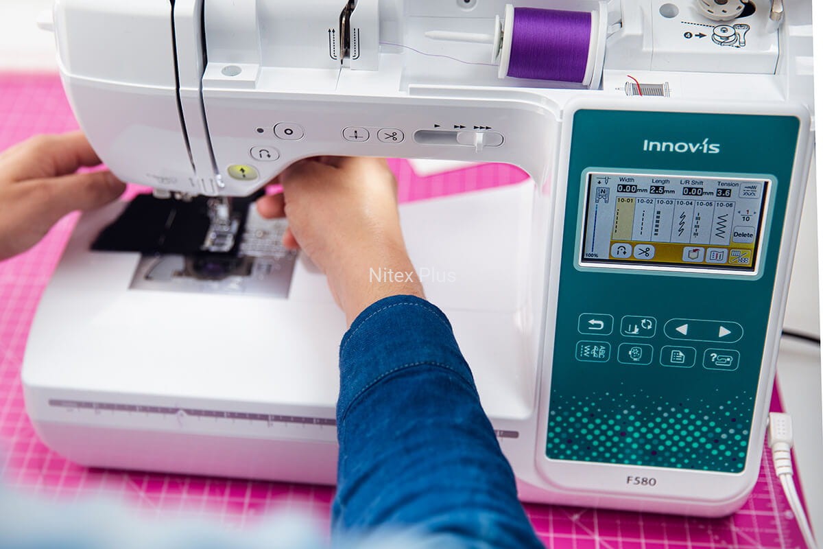 Osiągnij najlepszą możliwą jakość ściegu na różnych materiałach, regulując naprężenie górnej nici. Innov-is F580 zapewnia automatyczną kontrolę.