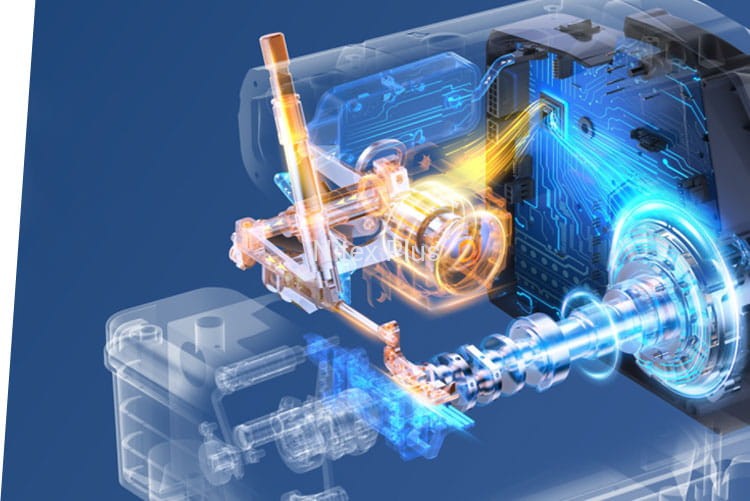 Overlocki C7 nie wymagają podłączania do sprężonego powietrza. Wszystkie mechanizmy związane funkcjami automatycznymi, sterowane są elektrycznie.