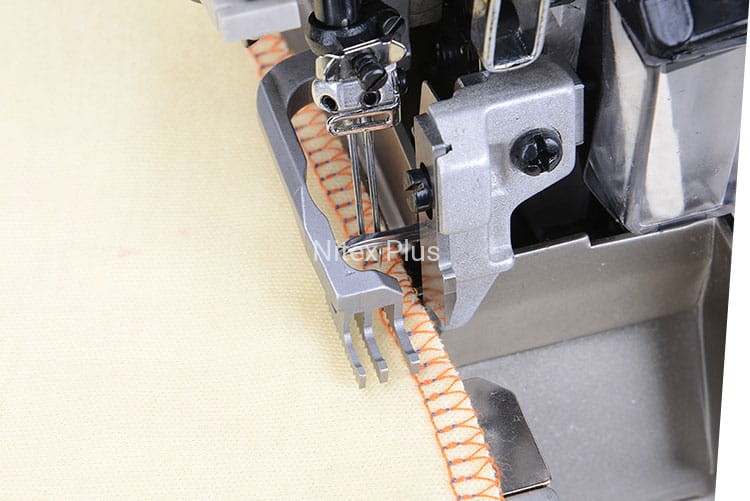 Overlock 4-nitkowy, 2-igłowy, wyposażony w zintegrowany napęd energooszczędny servo (system DIRECT DRIVE), który gwarantuje cichą i niezawodną pracę oraz mniejsze zużycie energii elektrycznej. Podwójny transport: dolny i górny (krocząca stopka). Górny transport zapewnia idealne przesuwanie górnych i dolnych warstw zszywanych materiałów, eliminuje problem pokonywania szwów poprzecznych oraz wszelkich zgrubień. Przeznaczone do szycia materiałów średnich i ciężkich. Zintegrowane oświetlenie LED pola pracy