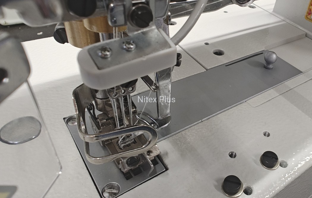 maszyna drabinkowa 3- igłowa, łoże płaskie, z dolnym i górnym przeplotem, przeznaczona do szycia wyrobów z dzianin. Konstrukcja maszyny umożliwia szycie ściegiem 3-igłowym lub 2-igłowym, a także ściegiem 1-nitkowym łańcuszkowym. Standardowo wyposażona jest w regulowaną linijkę (prowadnik FHA) ułatwiającą równe wprowadzanie materiału pod stopkę podczas podwijania koszulek, bluzek itp.
