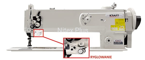 Stebnówka długoramienna 1-igłowa z potrójnym transportem (igłowym, ząbkowym oraz stopkowym) do szycia materiałów ciężkich takich jak skóra, tapicerka meblowa i samochodowa. Wyposażona jest w pneumatyczne podnoszenie stopki oraz funkcję pozycjonowania igły. Regulacja wzniosu stopki kroczącej za pomocą wyskalowanej tarczy na głowicy maszyny. Przycisk ryglowania umieszczony przy igielnicy.